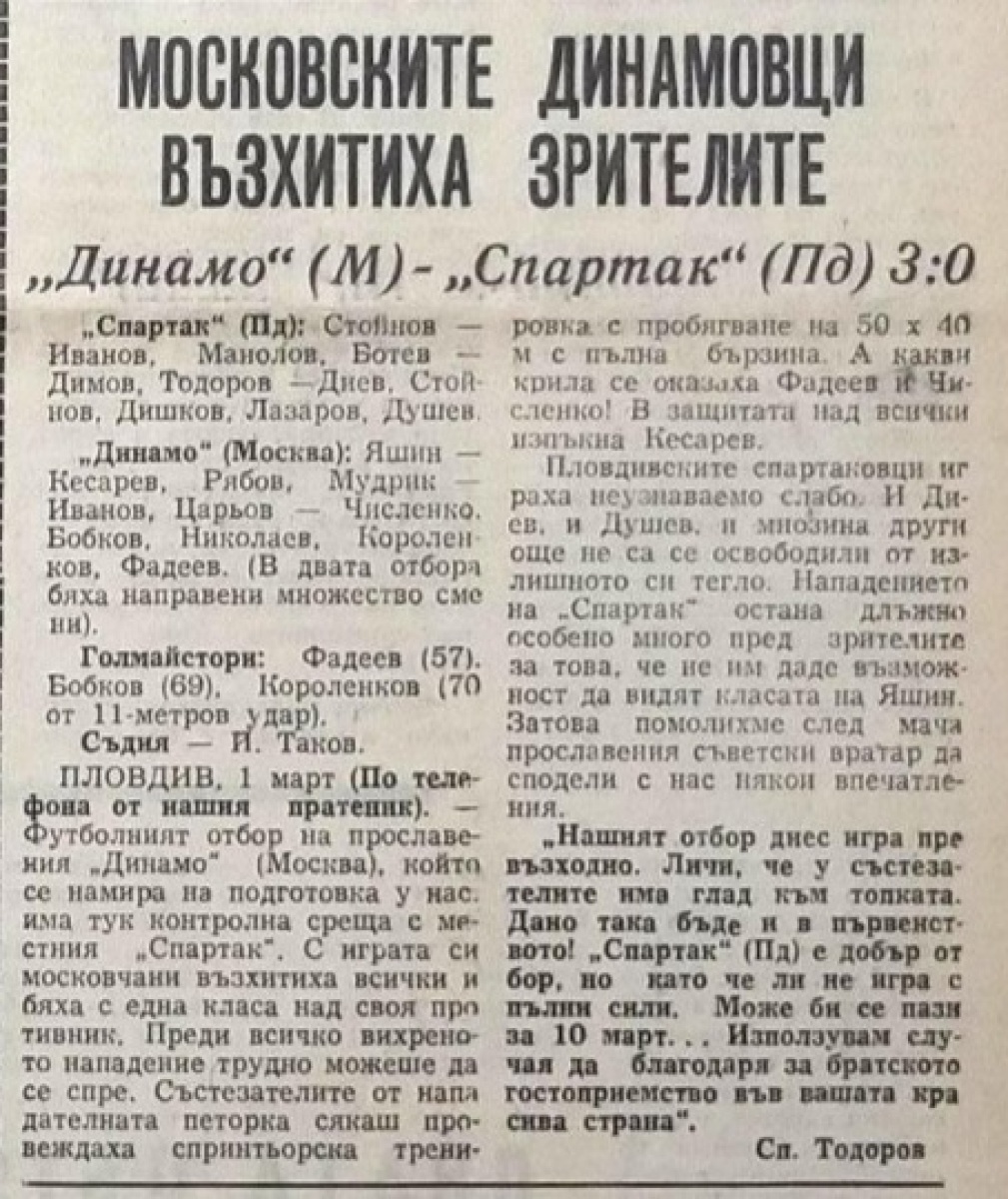 «Спартак» Пловдив - «Динамо» Москва - 0:3