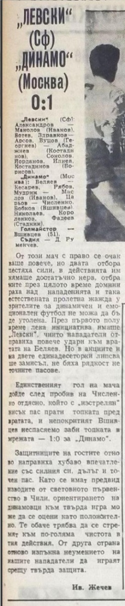 «Левски» София - «Динамо» Москва - 0:1
