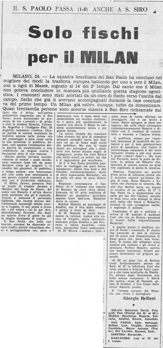 В составе "Милана" на матче в качестве усиления участвовали футболисты Курт Хамрин ("Фиорентина") и Серджо Пини из "Мантовы".
