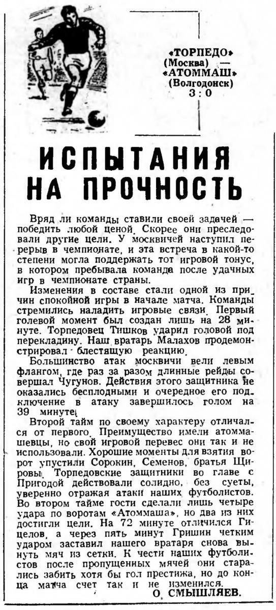 «Атоммаш» Волгодонск - «Торпедо» Москва - 0:3