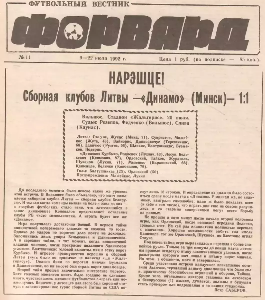 Литва - «Динамо» Минск - 1:1