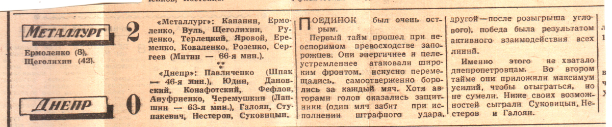 «Металлург» Запорожье - «Днепр» Днепропетровск - 2:0