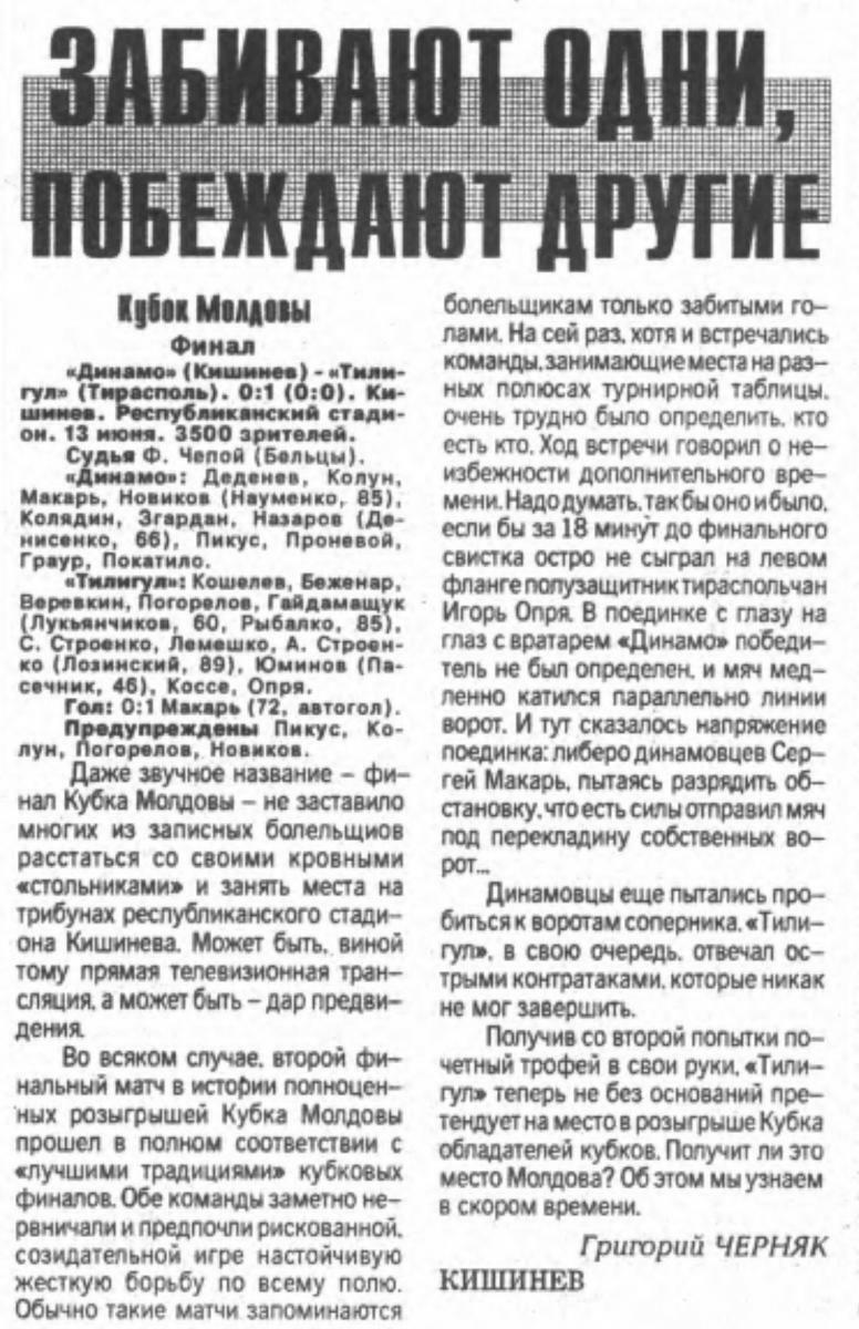 «Тилигул» Тирасполь - «Динамо-Кодру» Кишинёв - 1:0