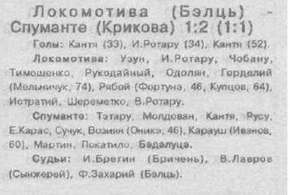 «Локомотива» Бельцы - «Спуманте» Криково - 1:2