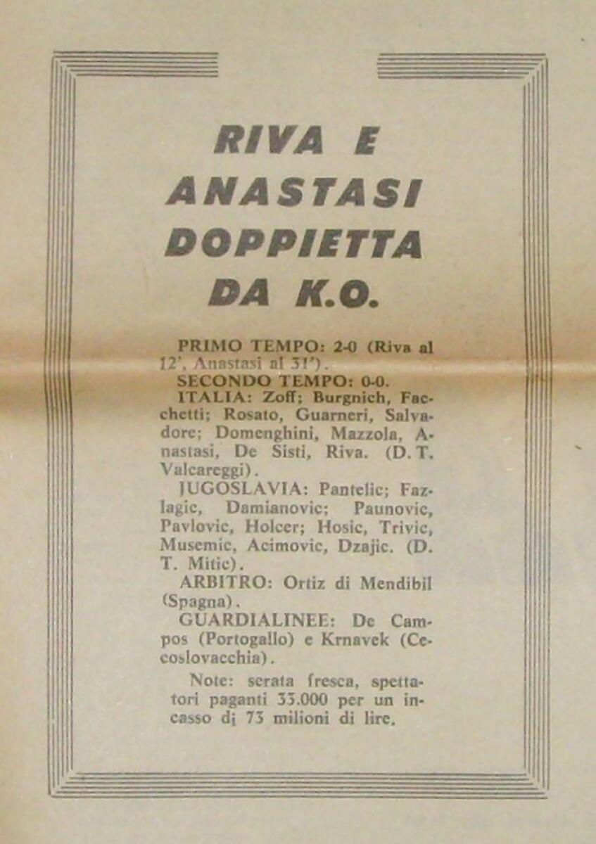 Италия - Югославия - 2:0
