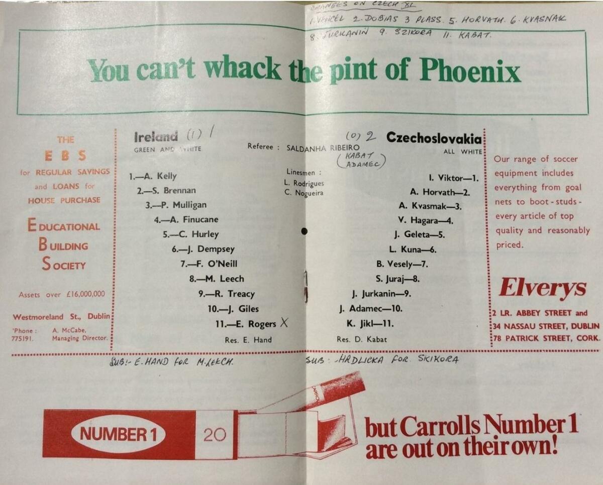 Ирландия - ЧССР - 1:2