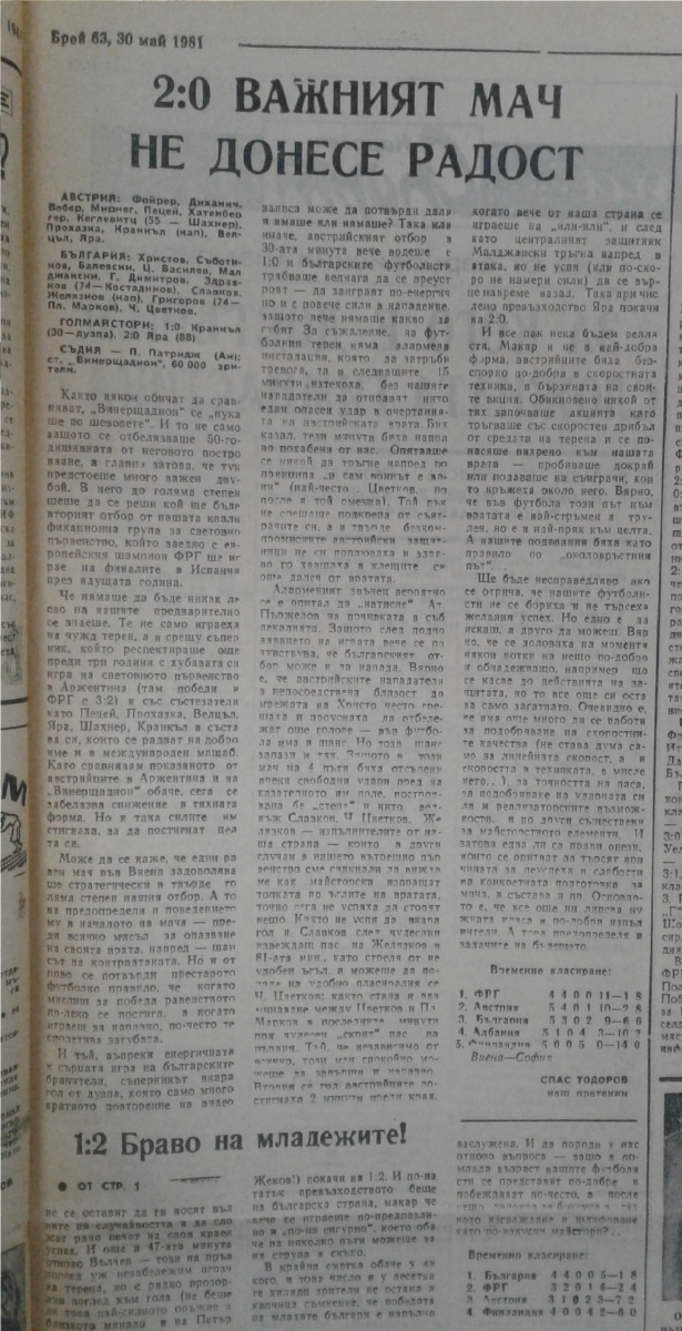 Австрия - Болгария - 2:0