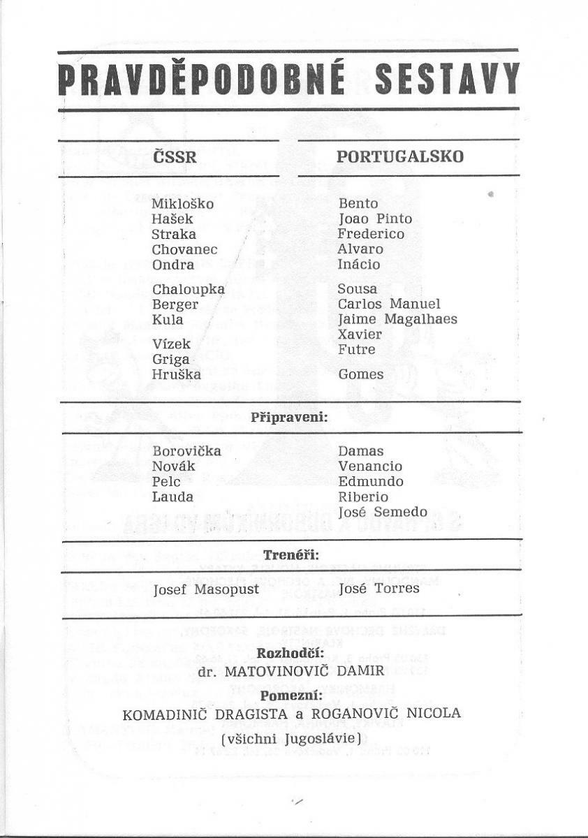 ЧССР - Португалия - 1:0