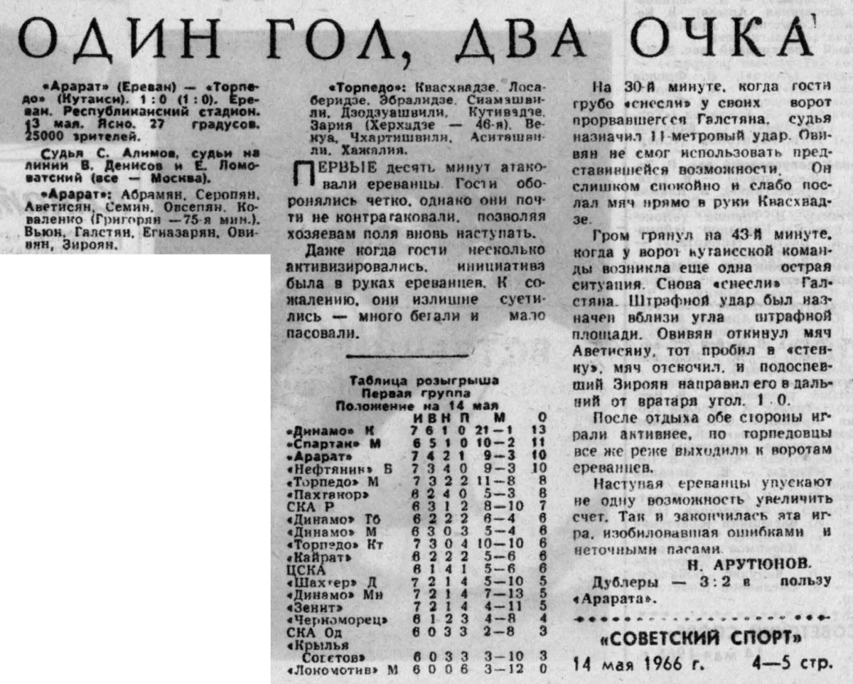 «Арарат» Ереван - «Торпедо» Кутаиси - 1:0