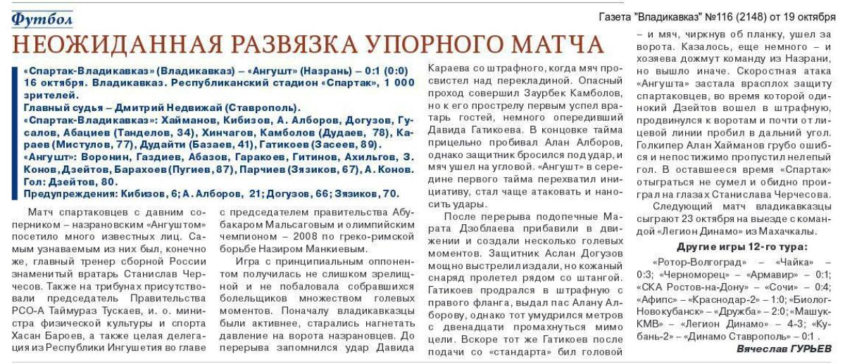 «Спартак-Владикавказ» Владикавказ - «Ангушт» - 0:1