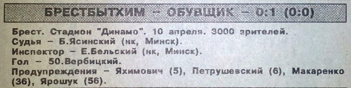 «Брестбытхим» Брест - «Обувщик» Лида - 0:1