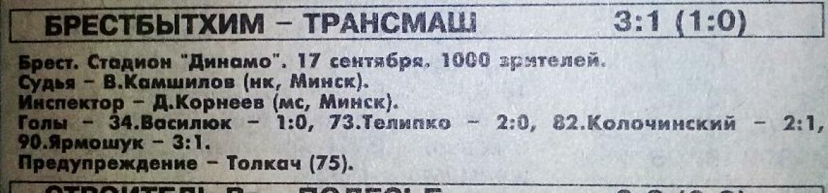 «Брестбытхим» Брест - «Трансмаш» Могилёв - 3:1