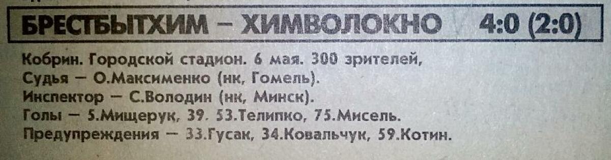 «Брестбытхим» Брест - «Химволокно» Гродно - 4:0