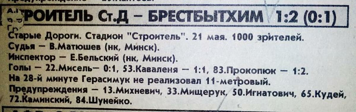 «Строитель» Старые Дороги - «Брестбытхим» Брест - 1:2