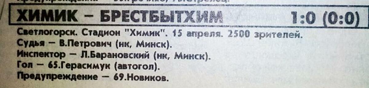 «Химик» Светлогорск - «Брестбытхим» Брест - 1:0