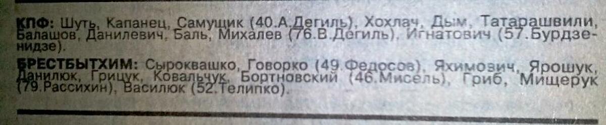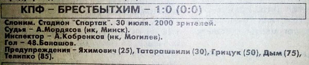 КПФ Слоним - «Брестбытхим» Брест - 1:0