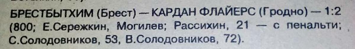 «Брестбытхим» Брест - «Кардан Флайерс» Гродно - 1:2