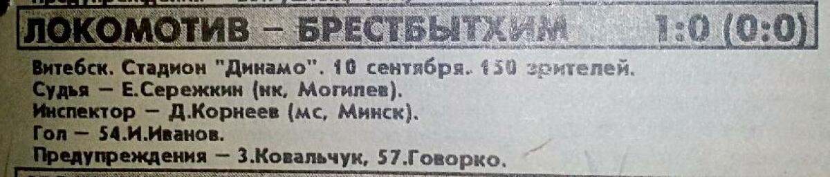 «Локомотив» Витебск - «Брестбытхим» Брест - 1:0