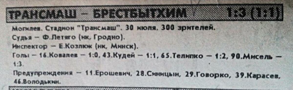 «Трансмаш» Могилёв - «Брестбытхим» Брест - 1:3