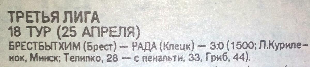 «Брестбытхим» Брест - «Рада» Клецк - 3:0