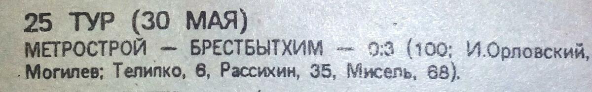 «Метрострой» Минск - «Брестбытхим» Брест - 0:3