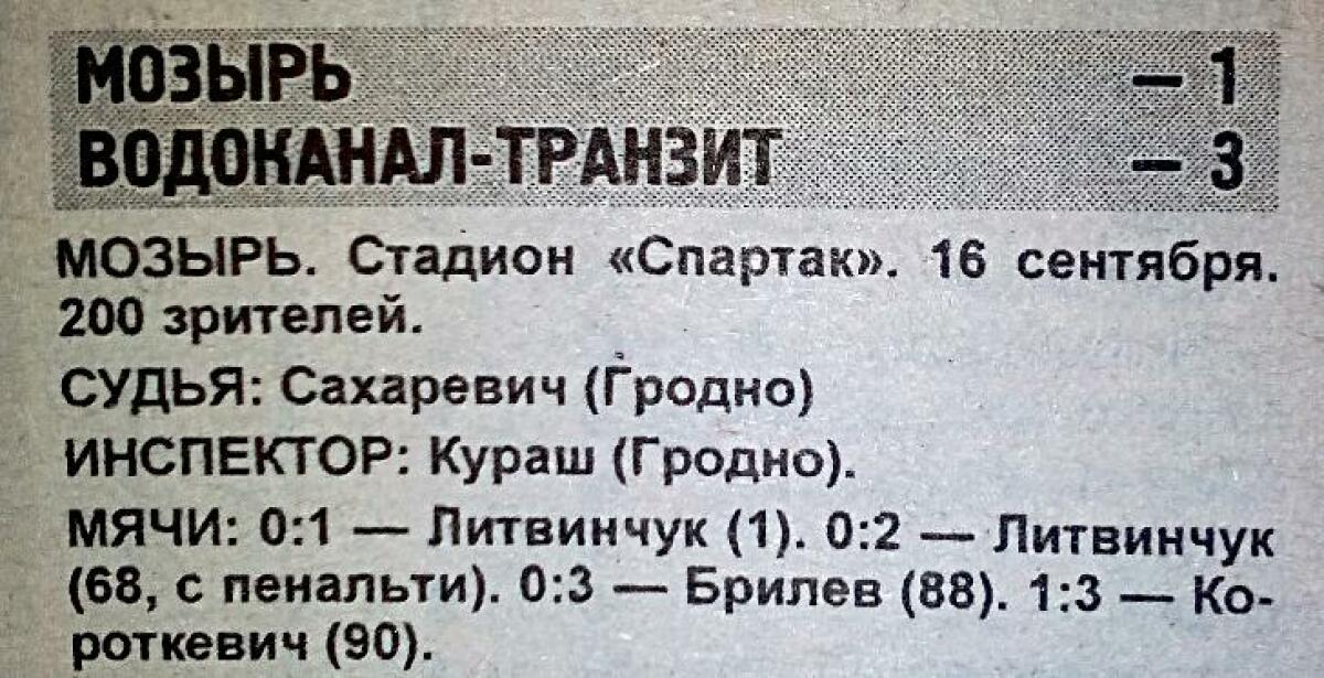 «Мозырь» Мозырь - «Водоканал-Транзит» Брест - 1:3