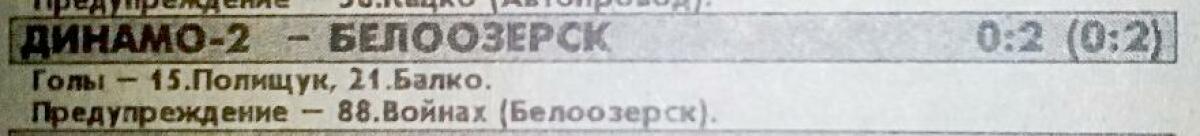 «Динамо-2» Брест - «Белоозёрск» Белоозёрск - 0:2