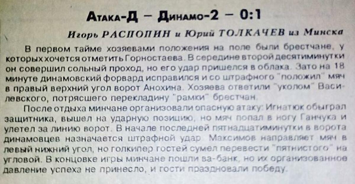 «Атака-Аура-Д» Минск - «Динамо-2» Брест - 0:1