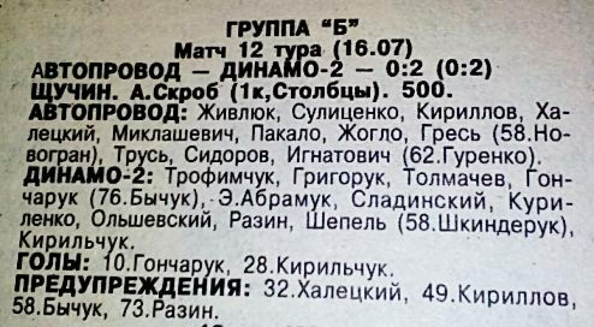 «Автопровод» Щучин - «Динамо-2» Брест - 0:2