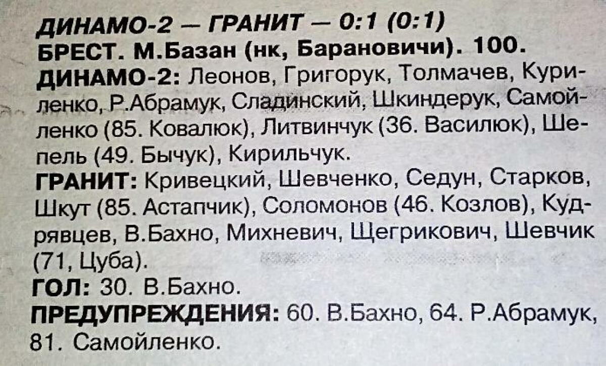 «Динамо-2» Брест - «Гранит» Микашевичи - 0:1