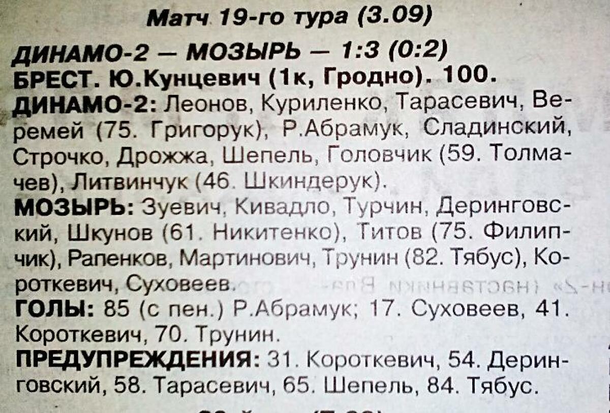 «Динамо-2» Брест - «Мозырь» Мозырь - 1:3