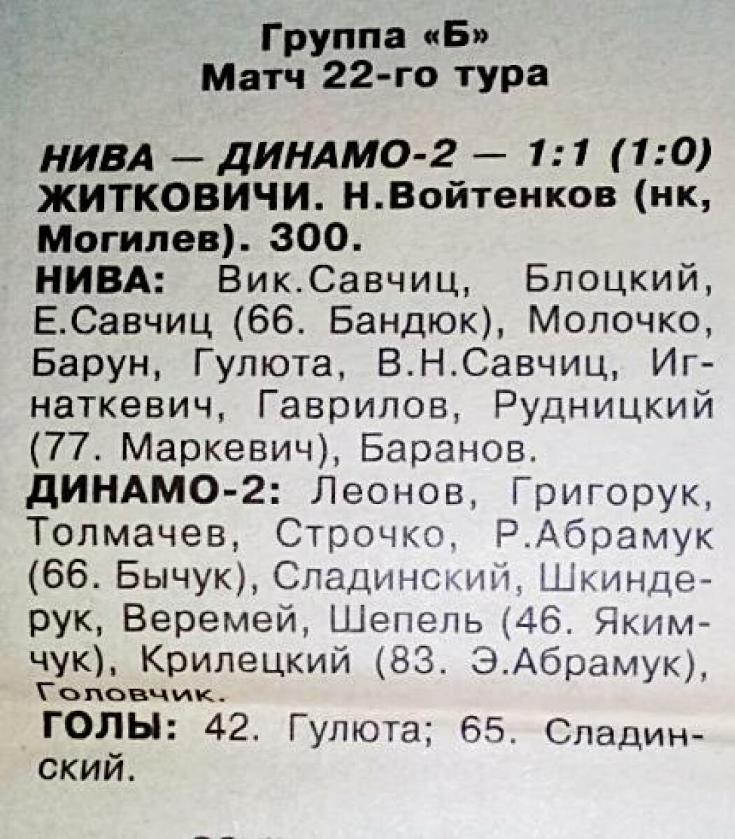 «Нива» Житковичи - «Динамо-2» Брест - 1:1