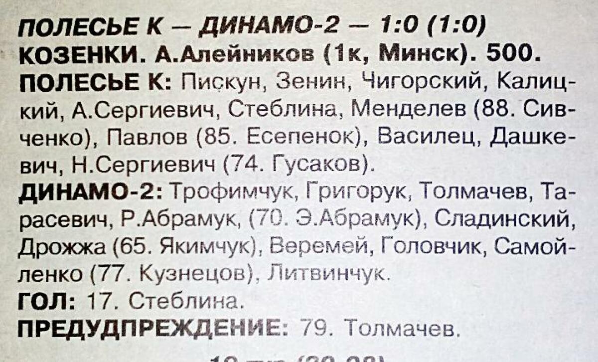 «Полесье» Козенки - «Динамо-2» Брест - 1:0