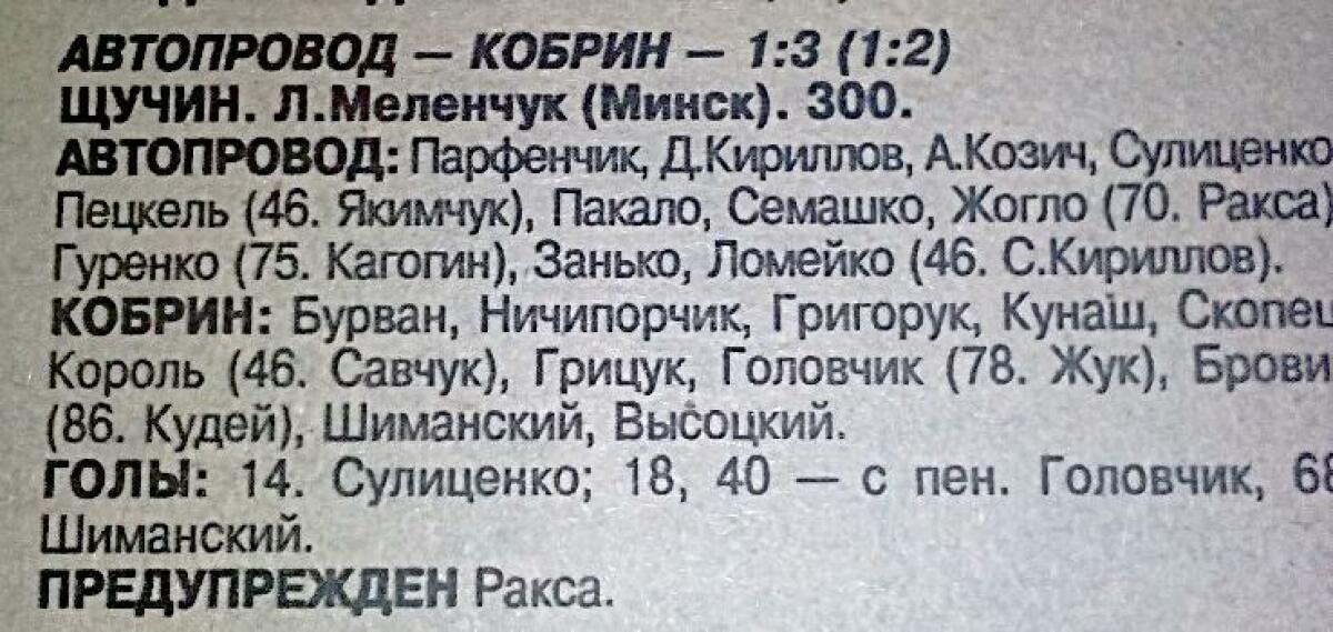 «Автопровод» Щучин - «Кобрин» Кобрин - 1:3