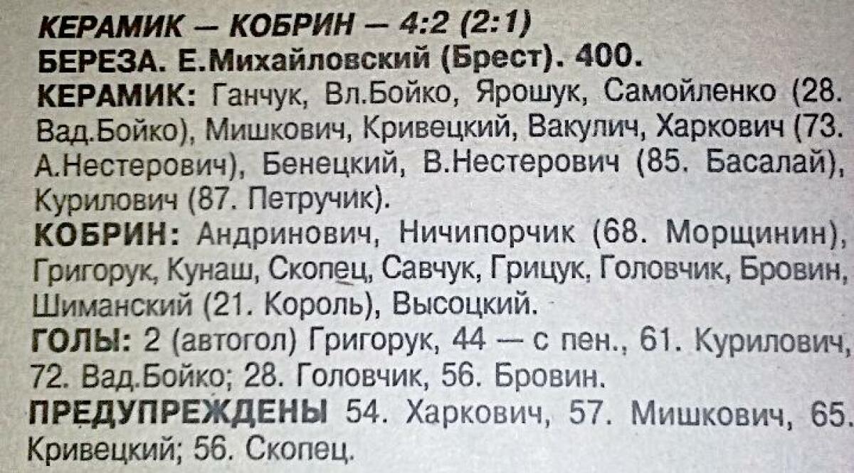 ФК БСМ Берёза - «Кобрин» Кобрин - 4:2