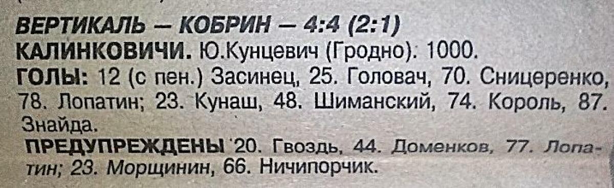 «Вертикаль» Калинковичи - «Кобрин» Кобрин - 4:4