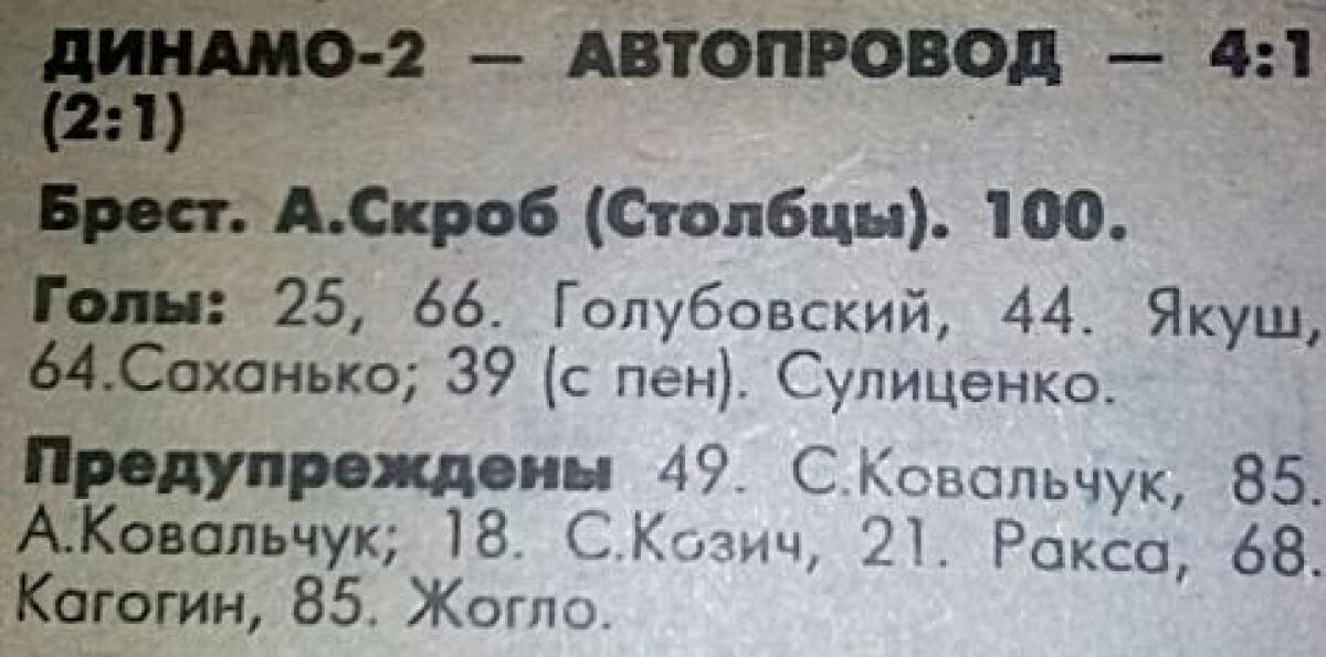 «Динамо-2» Брест - «Автопровод» Щучин - 4:1