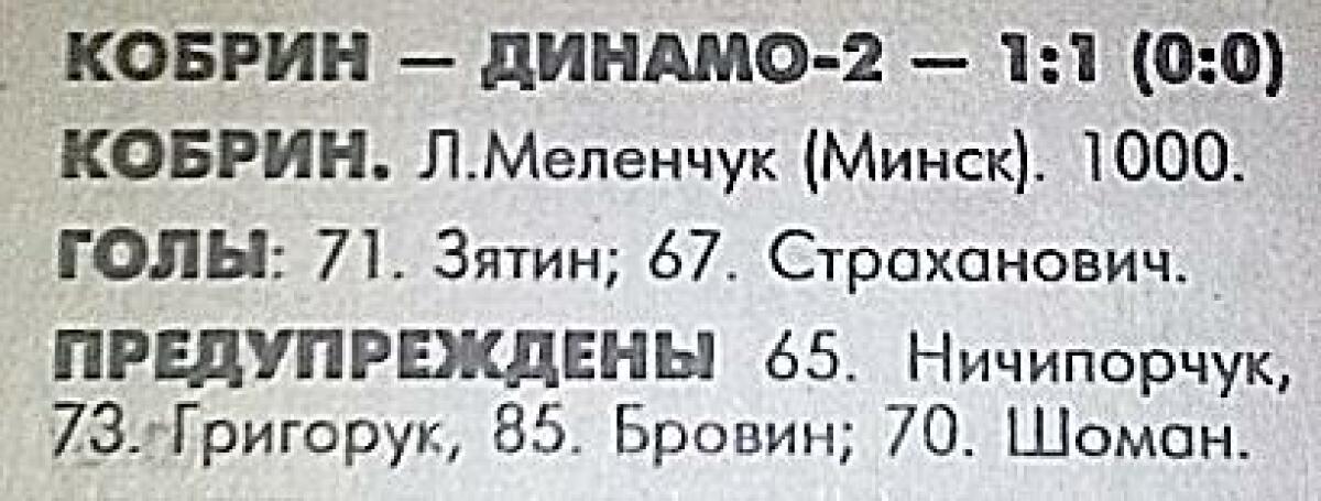 «Динамо-2» Брест - «Кобрин» Кобрин - 1:1