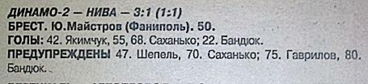 «Динамо-2» Брест - «Нива» Житковичи - 3:1