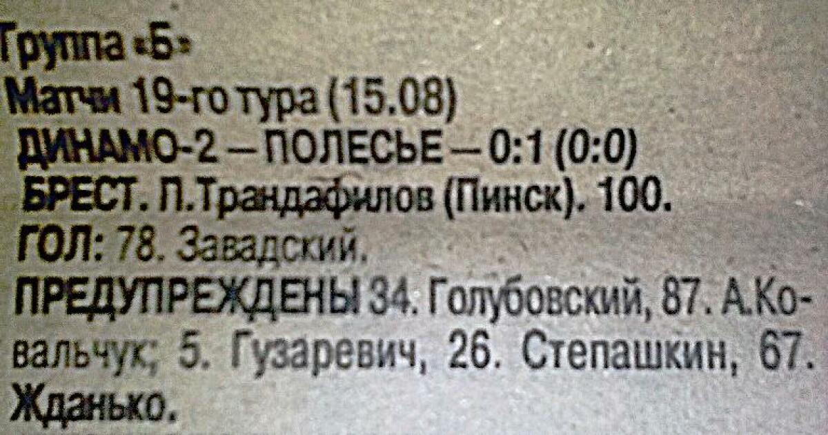 «Динамо-2» Брест - «Полесье» Лунинец - 0:1