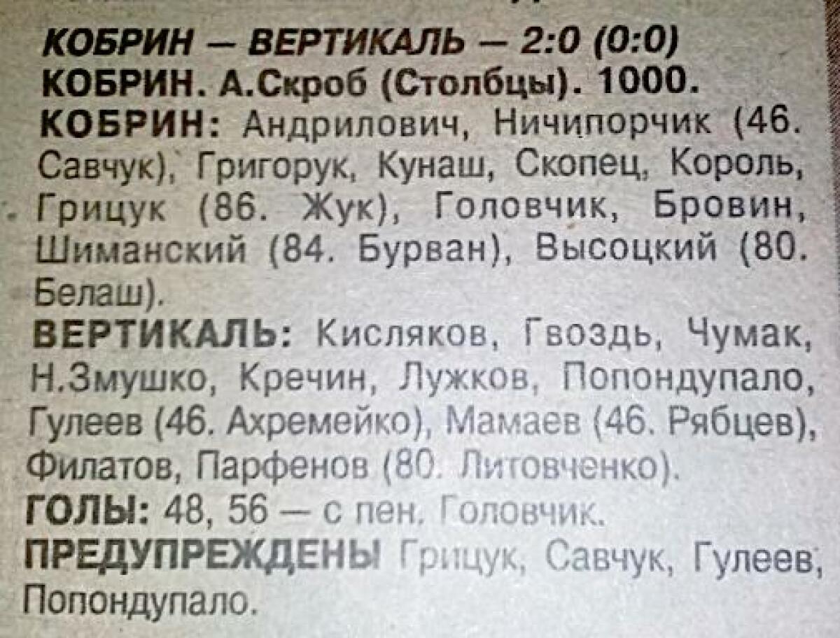 «Кобрин» Кобрин - «Вертикаль» Калинковичи - 2:0