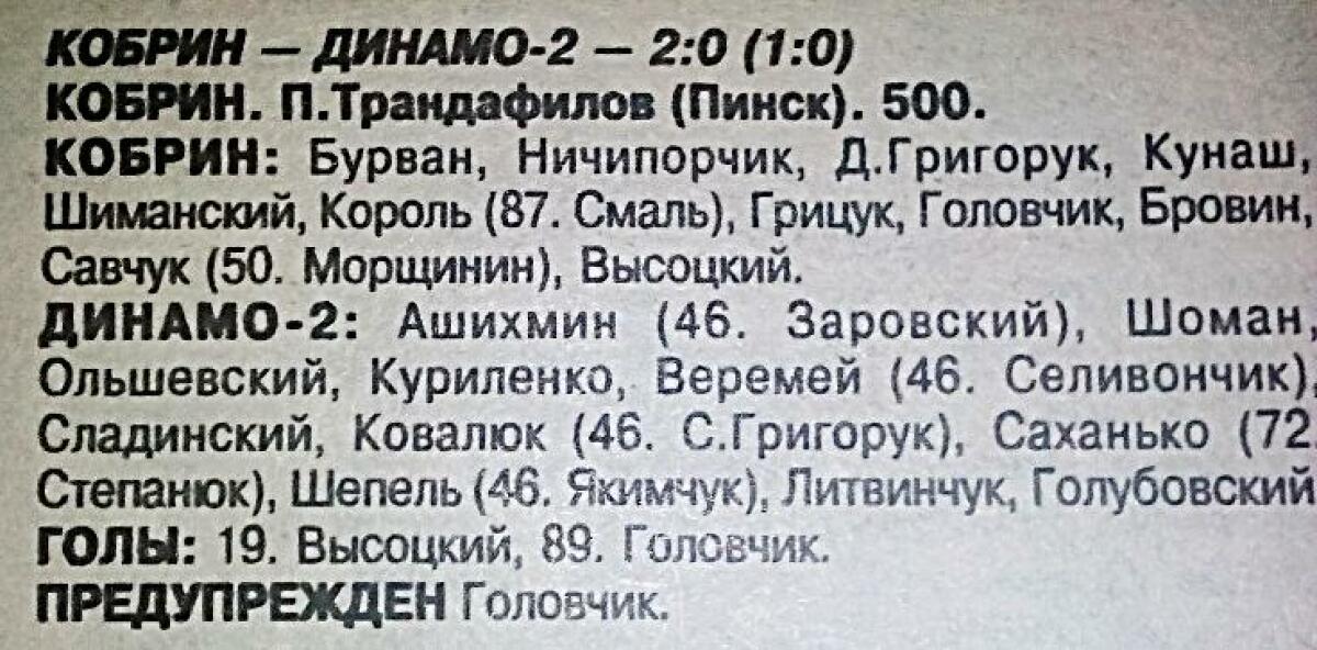 «Кобрин» Кобрин - «Динамо-2» Брест - 2:0