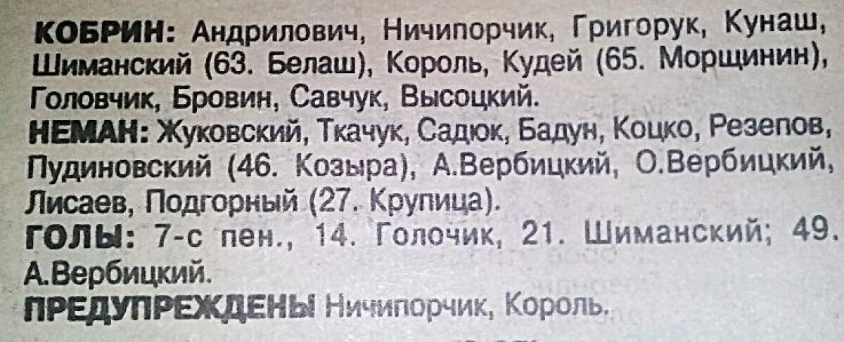 «Кобрин» Кобрин - «Неман» Мосты - 3:1