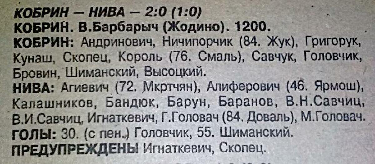«Кобрин» Кобрин - «Нива» Житковичи - 2:0