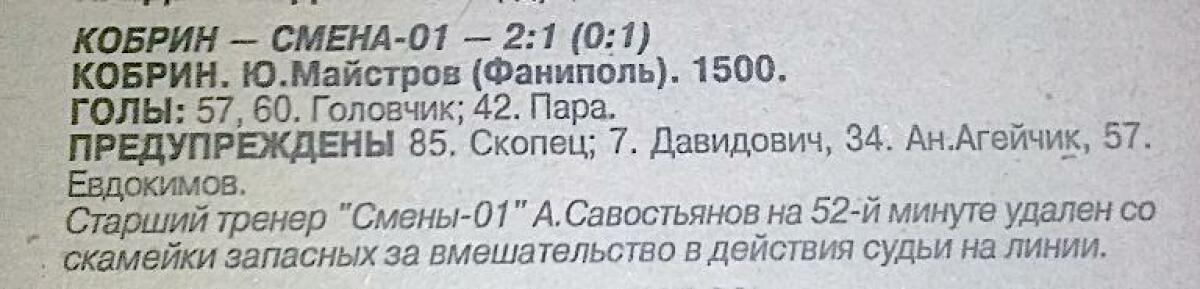 «Кобрин» Кобрин - «Смена» Волковыск - 2:1