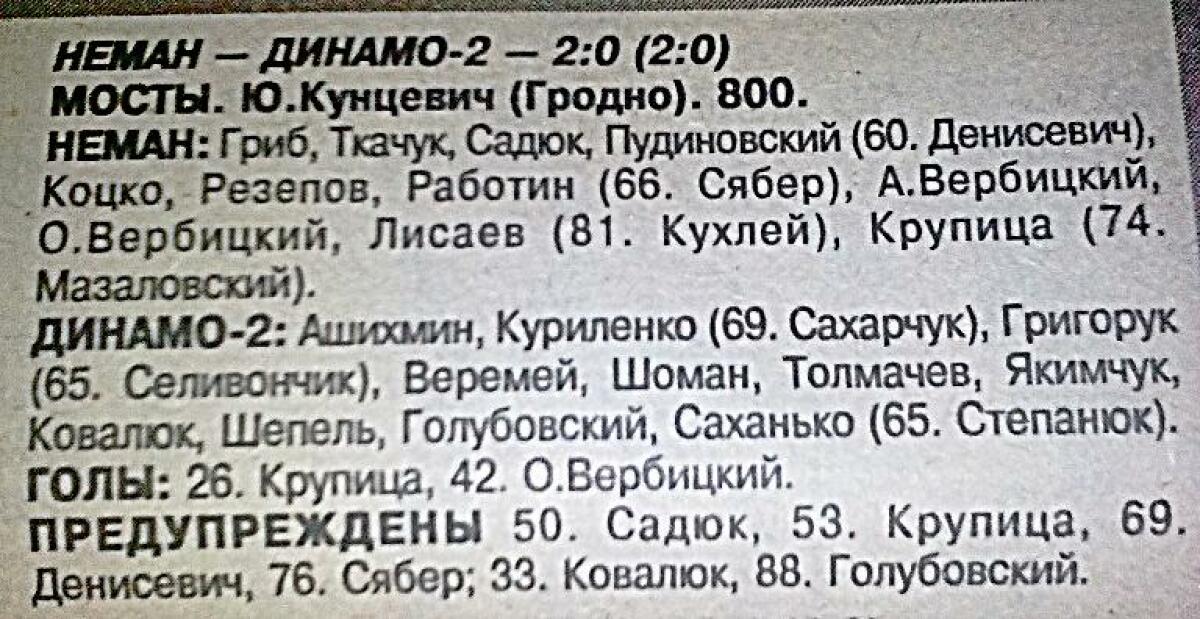 «Неман» Мосты - «Динамо-2» Брест - 2:0