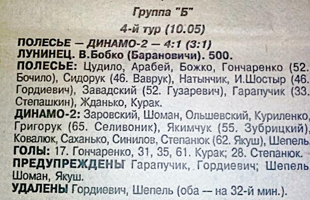 «Полесье» Лунинец - «Динамо-2» Брест - 4:1