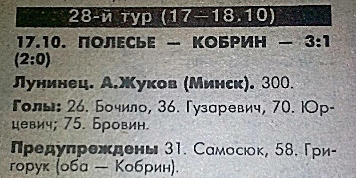 «Полесье» Лунинец - «Кобрин» Кобрин - 3:1