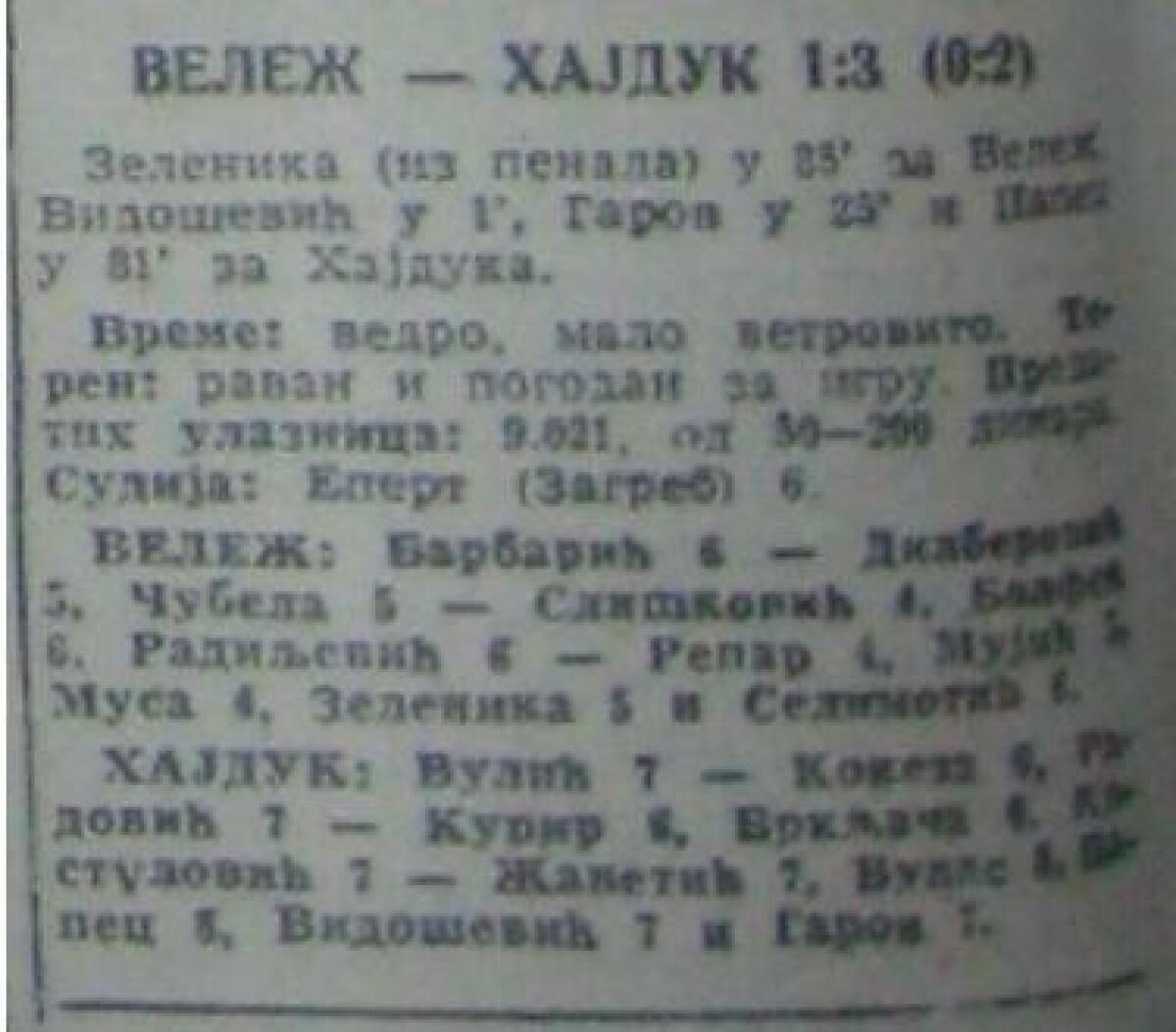 «Вележ» Мостар - «Хайдук» Сплит - 1:3