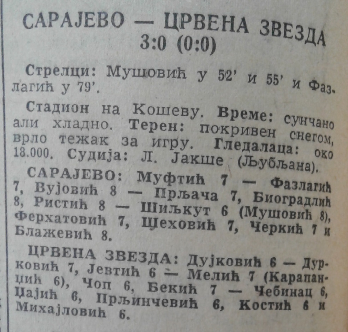«Сараево» Сараево - «Црвена Звезда» Белград - 3:0